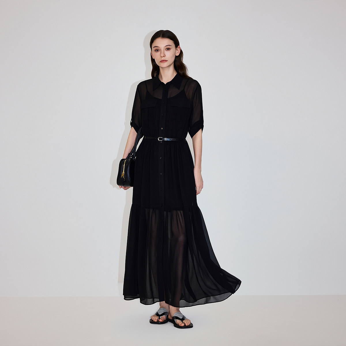【新品】OCHIRLY欧时力 连衣裙26春夏腰带雪纺衬衫裙两件套配吊带