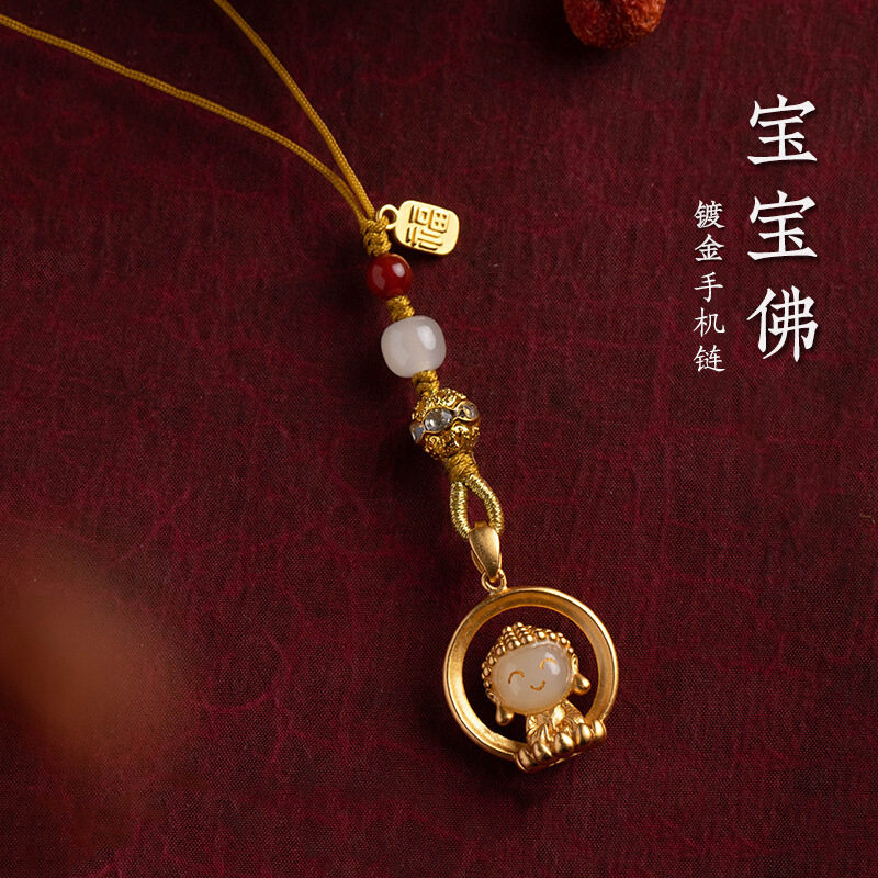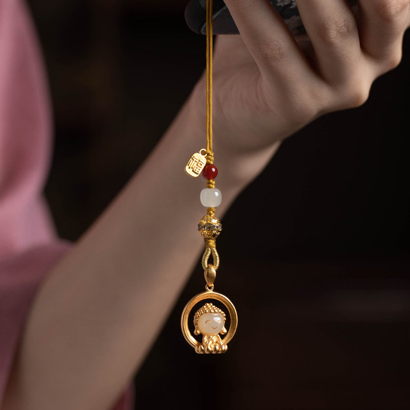 【普陀山正品】宝宝佛手机链天然和田玉手机挂饰钥匙扣挂绳吊坠