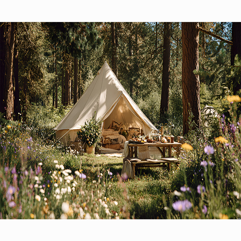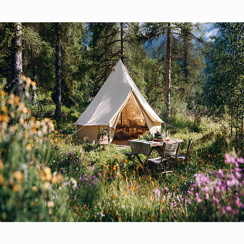 春天露营帐篷野炊直播背景布3d高级感网红拍照区男女主播抖音快手拍视频段子立体壁纸画直播间场景布置