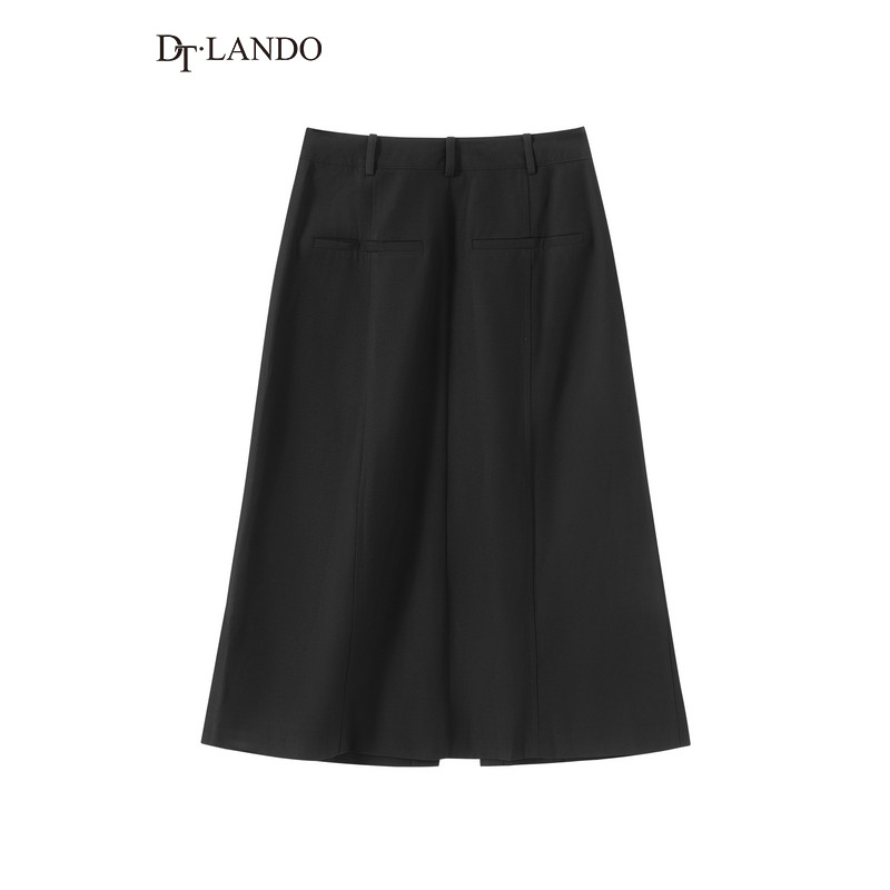 DTLANDO秋季高腰中裙简约时尚开叉百搭黑色裙子休闲优雅女半身裙