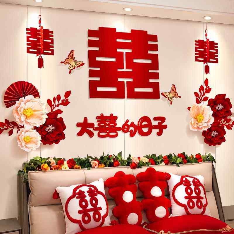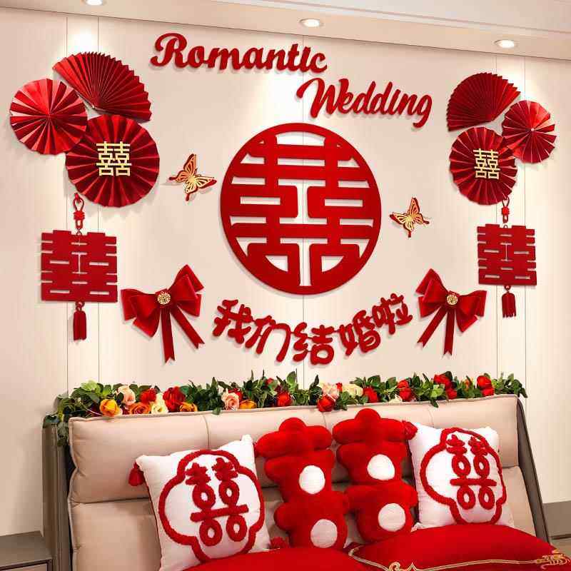 婚房布置套装男方主卧装饰女方卧室床头拉花婚礼用品结婚背景墙