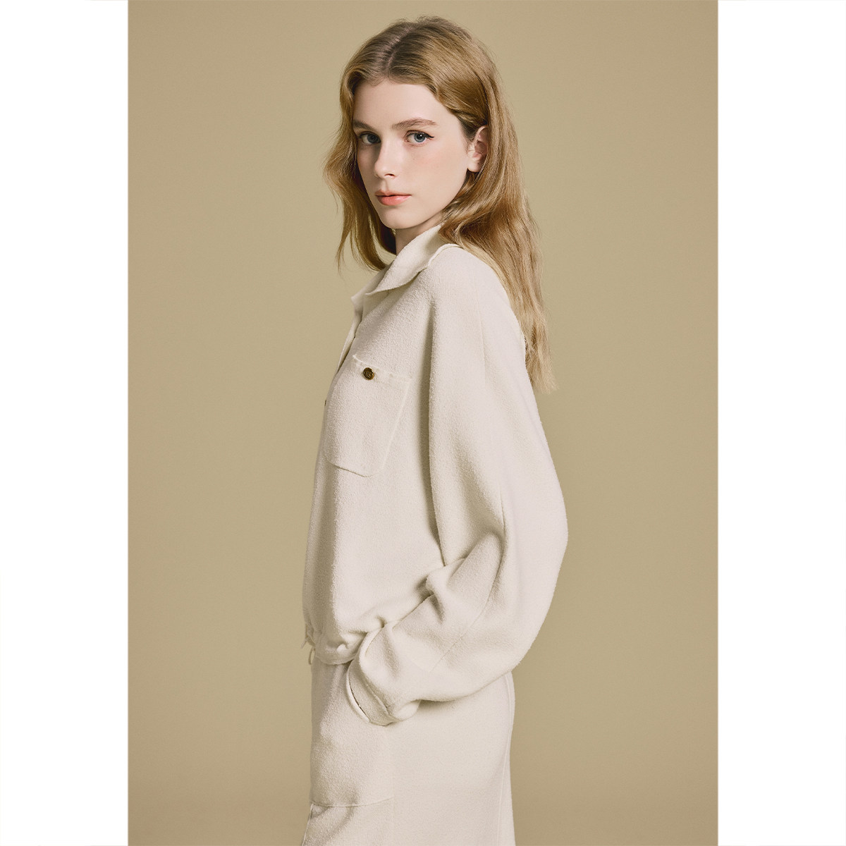 诗篇专选法式轻奢慵懒风宽松翻领蝙蝠衫针织开衫2025秋款