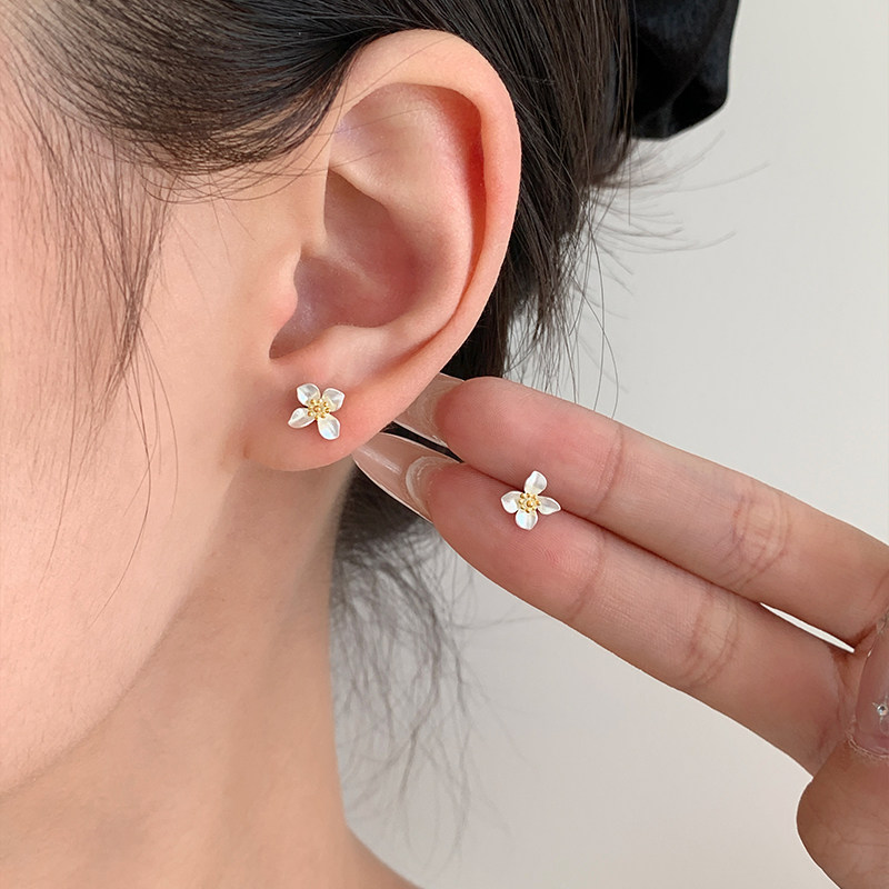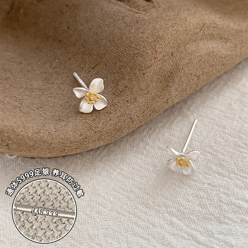 纯银栀子花朵耳钉纯银999养耳洞睡觉免摘耳环女款2025新款潮小众