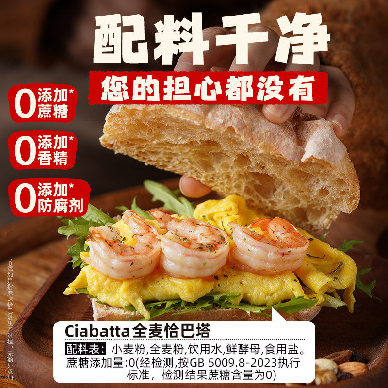 全麦恰巴塔面包整箱早餐速食减低无添蔗糖肥健身代餐饱腹零食品