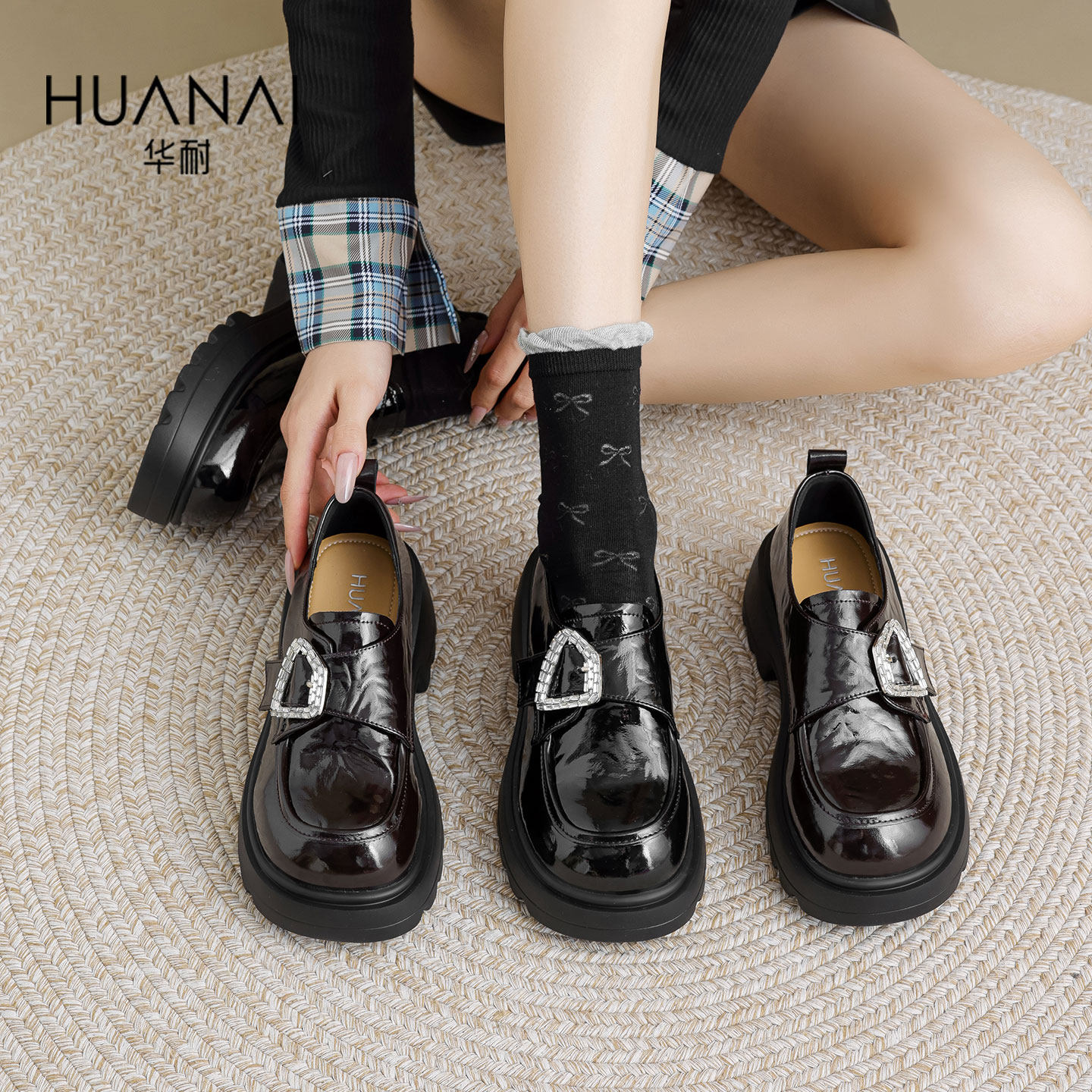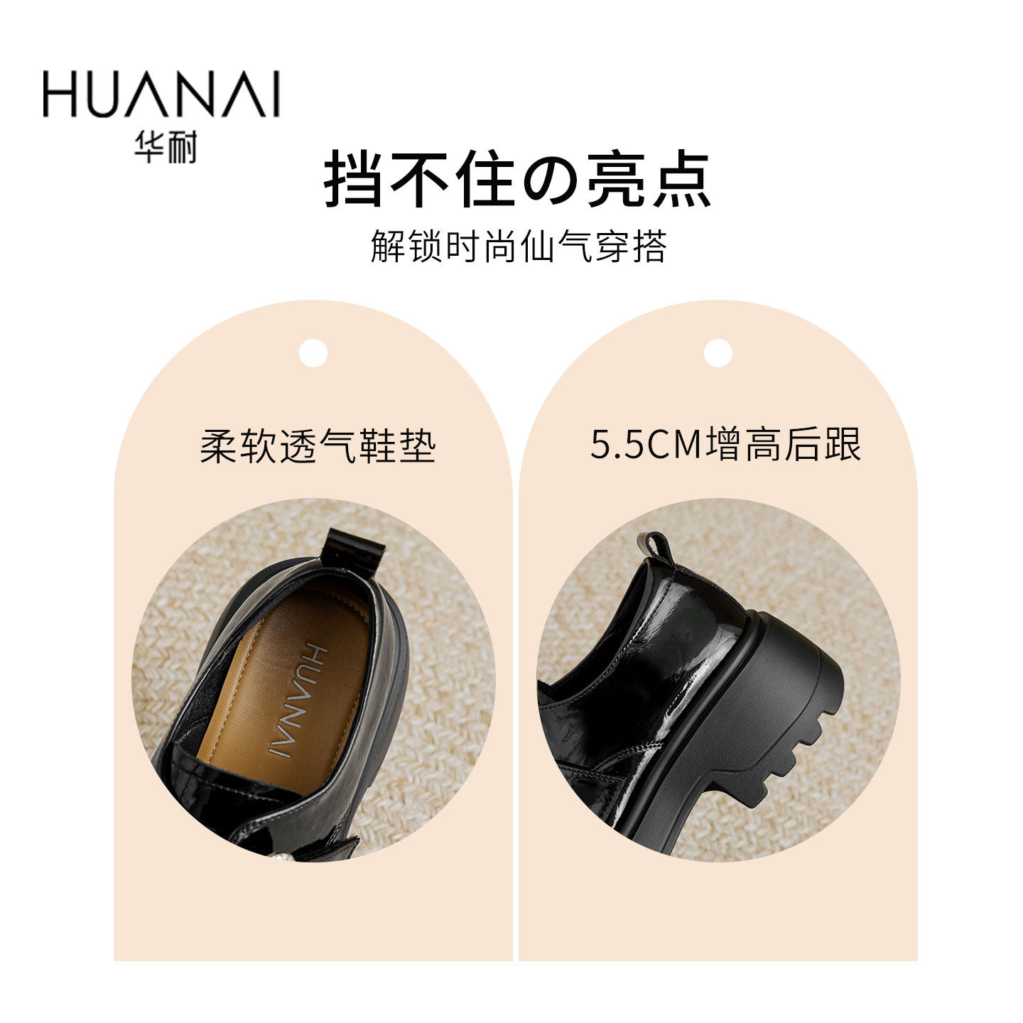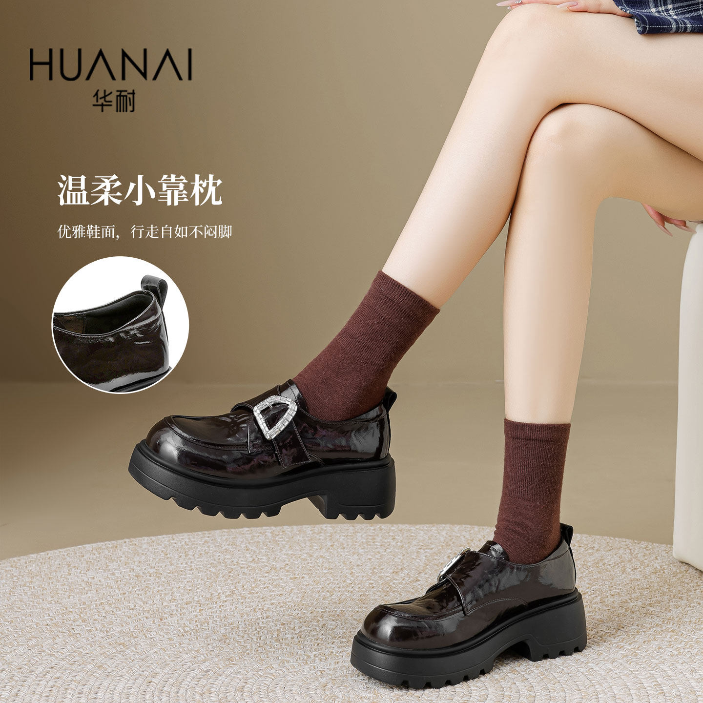 华耐单鞋女2025秋季新款通勤JK小皮鞋增高百搭英伦风粗跟乐福鞋女