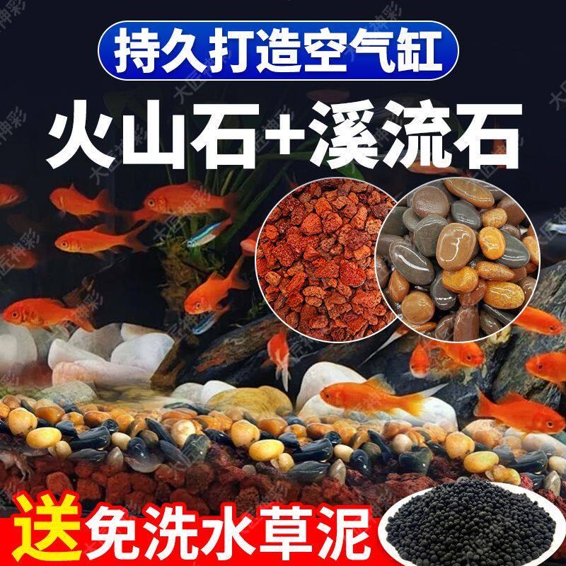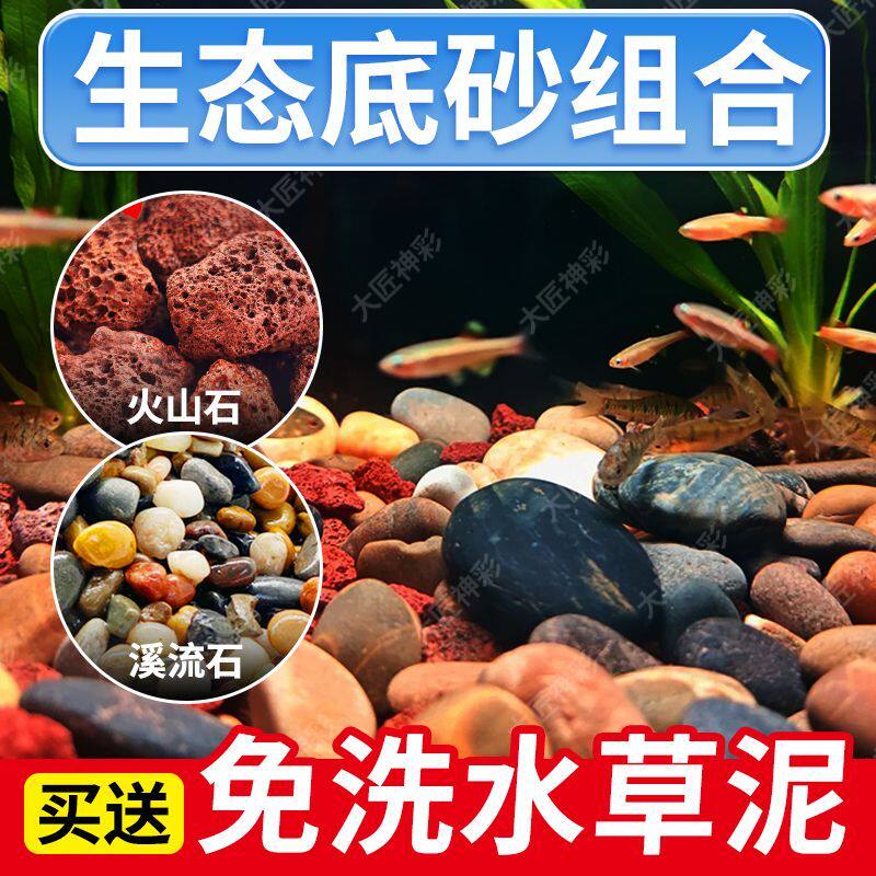 天然鱼缸造景底砂火山石溪流石套餐专用铺底石头颗粒古法水质养鱼