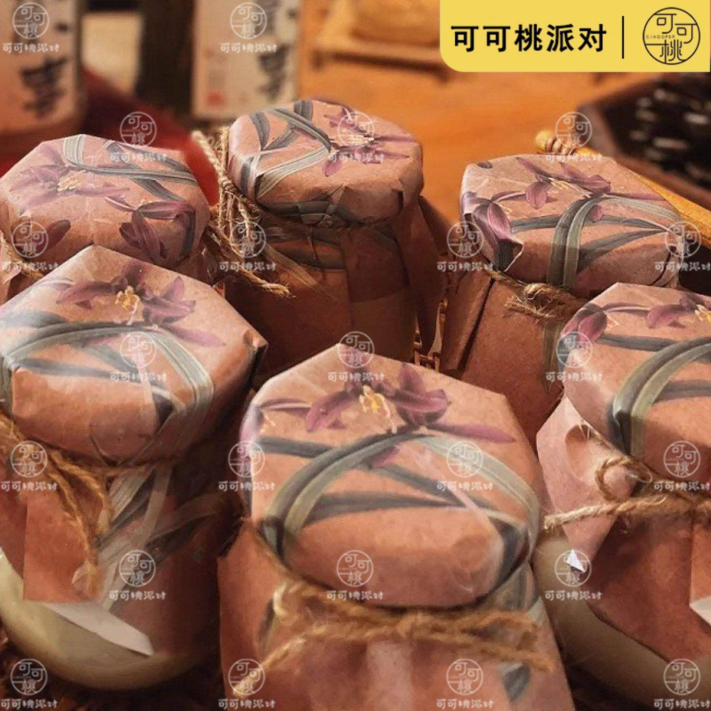 牛皮纸原色封口纸兰花布丁纸牛奶酸奶玻璃瓶甜品杯麻绳绑带甜品台