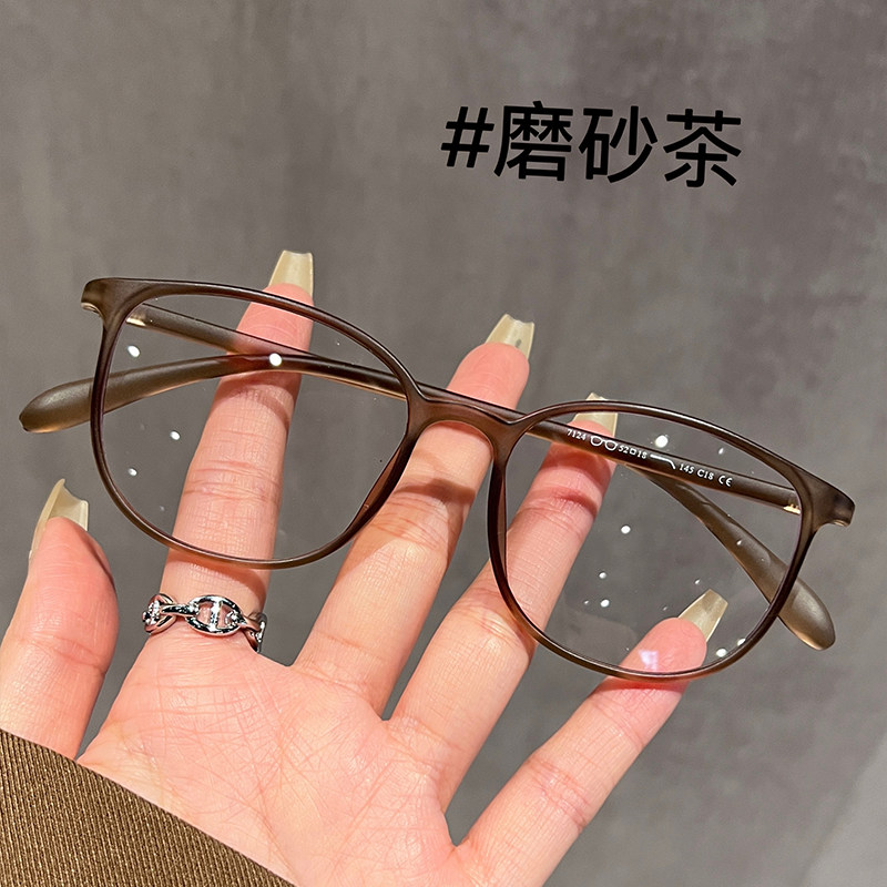 韩版潮流TR90透明茶棕色眼镜近视女可配度数素颜显白椭圆形眼睛架