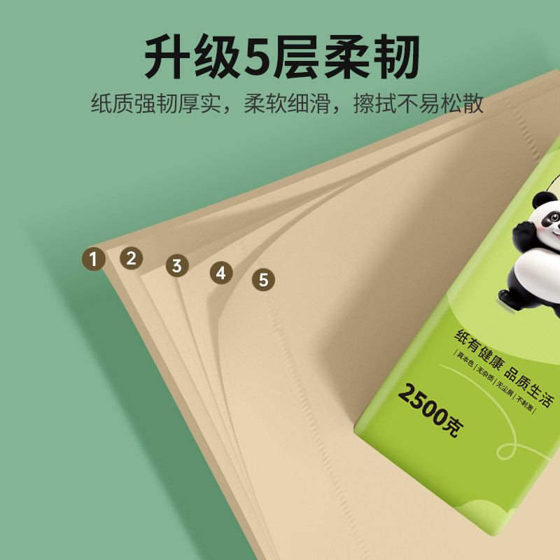 丽邦5层妇婴大卷纸2500g/1800g家庭实惠装卷筒纸无芯手纸厕所纸巾