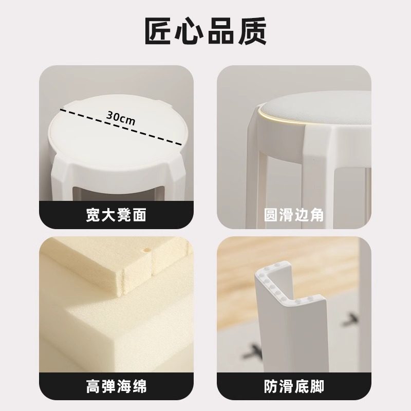 塑料凳子家用软包可叠放加厚结实耐用轻奢高级感圆凳子备用高椅子