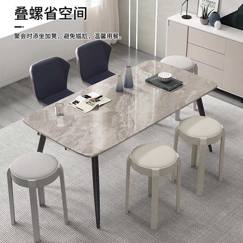 塑料凳子家用可叠放软包圆凳轻奢高级感加厚客厅餐桌板凳备用椅子
