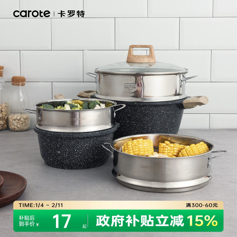 卡罗特蒸屉304不锈钢蒸笼蒸饭器蒸格奶锅汤锅蒸锅家用蒸米饭蒸架