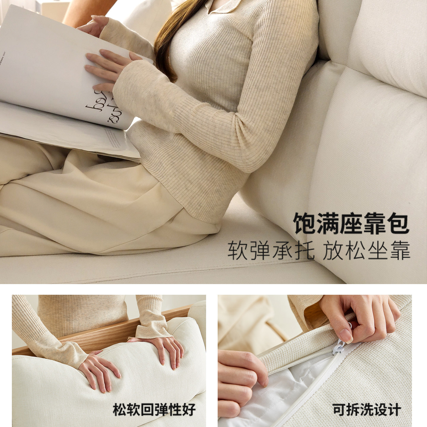 源氏木语实木沙发现代简约高靠背布艺沙发客厅小户型橡木直排沙发