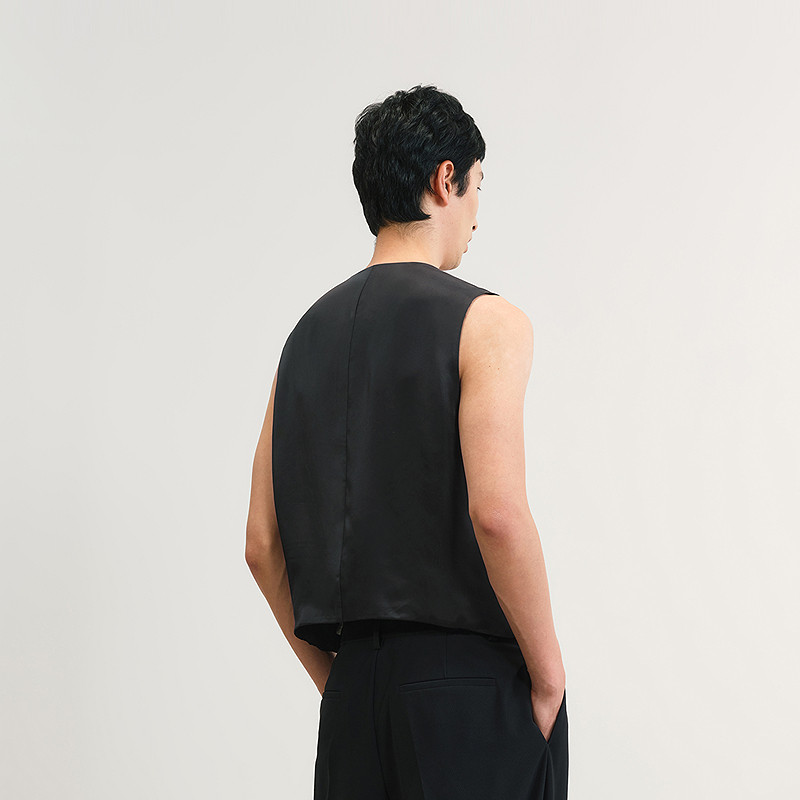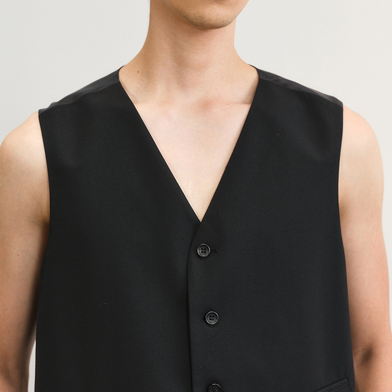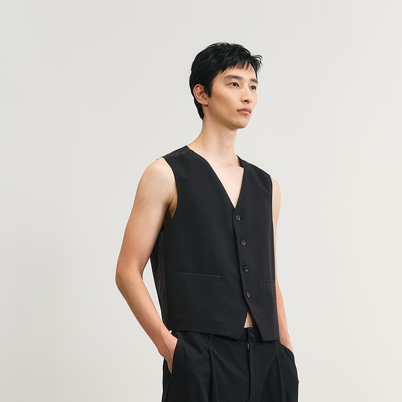 速写男装春夏新款男士马甲短款V领异材质拼接修身马甲时尚复古潮