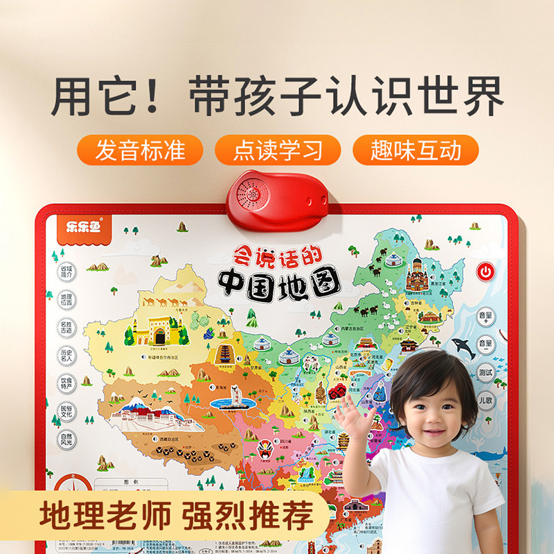 乐乐鱼点读地图会说话的中国地图儿童版世界早教有声挂图益智幼儿