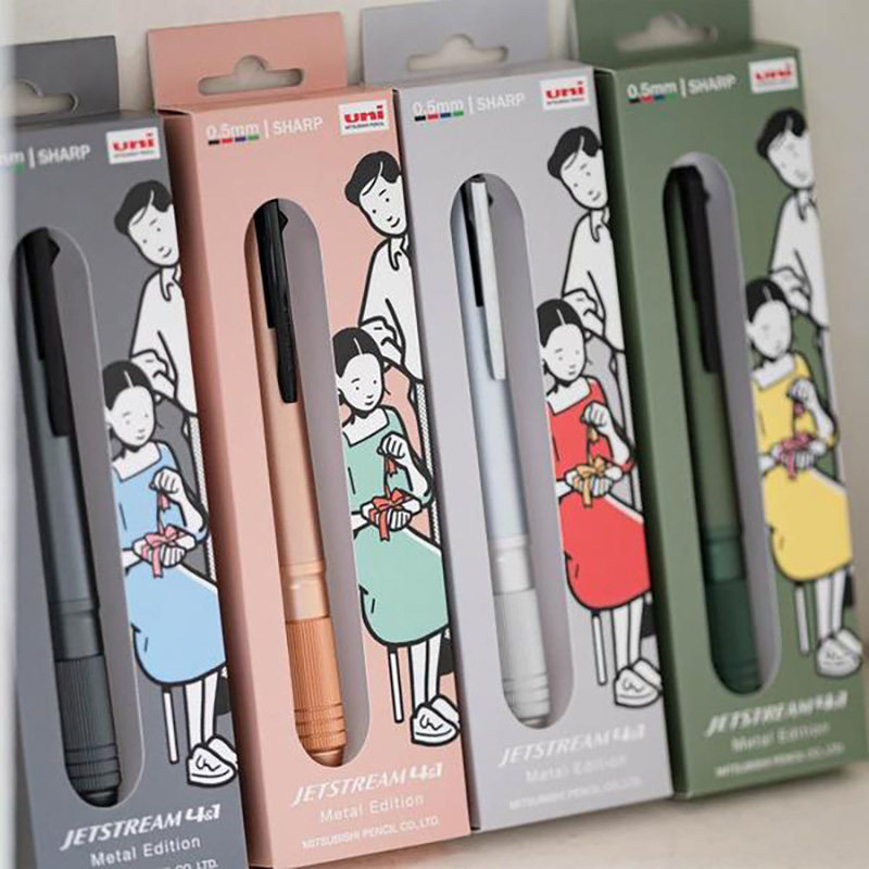 日本UNI三菱jetstream人气插画家金安亮合作款4+1圆珠笔磨砂漆面
