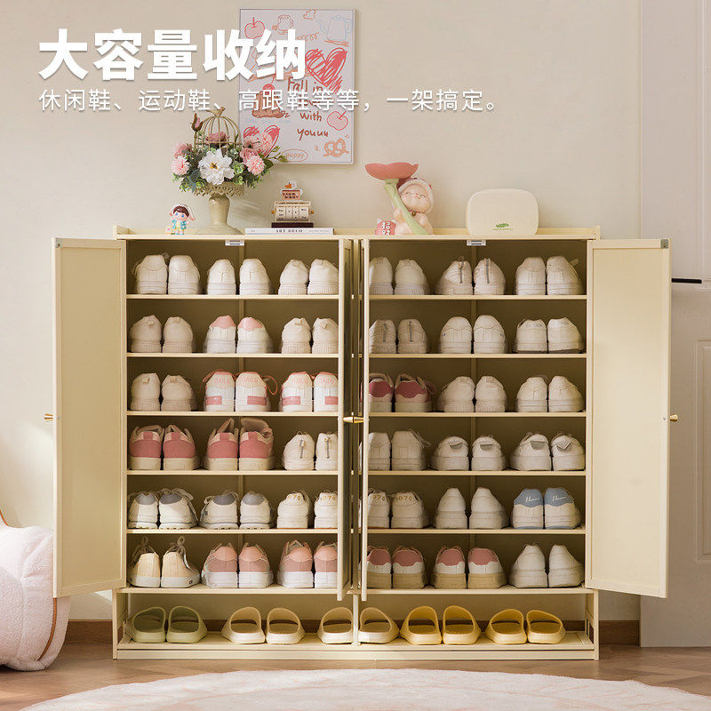 加厚钢制鞋柜门口家用一体靠墙多层储物柜入户落地大容量防尘鞋架