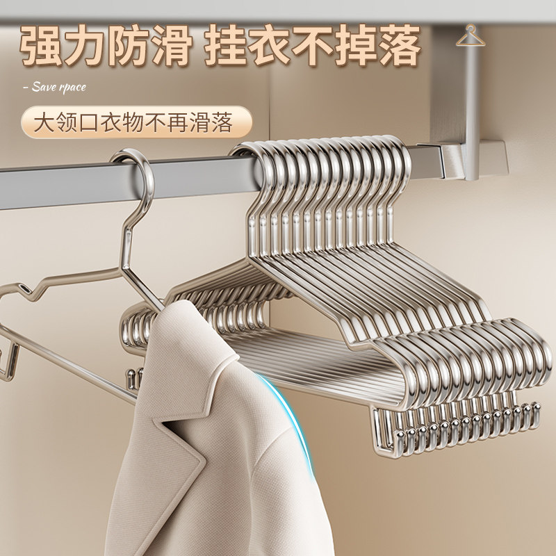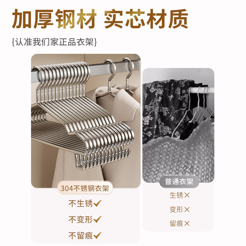 不锈钢304晾衣架家用挂衣服加厚加粗钢衣架实心加长大衣结实带钩