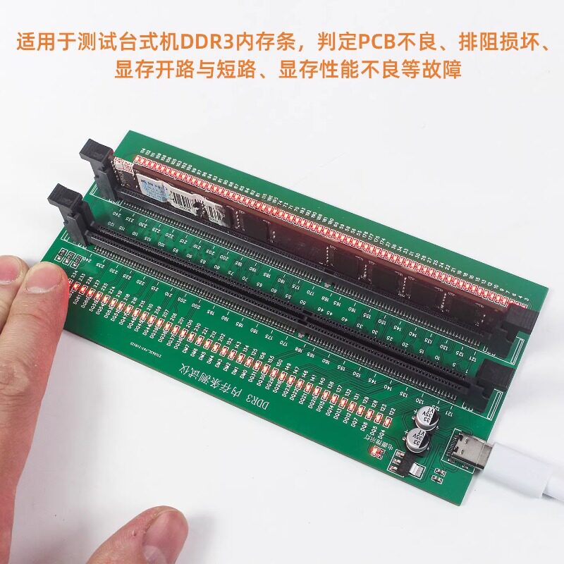 HMT-TT08台式机DDR3内存条带灯测试仪内存卡诊断卡USB-Type-C供电