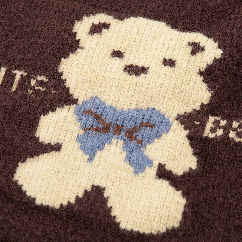 半高领拉链设计 可爱提花小熊