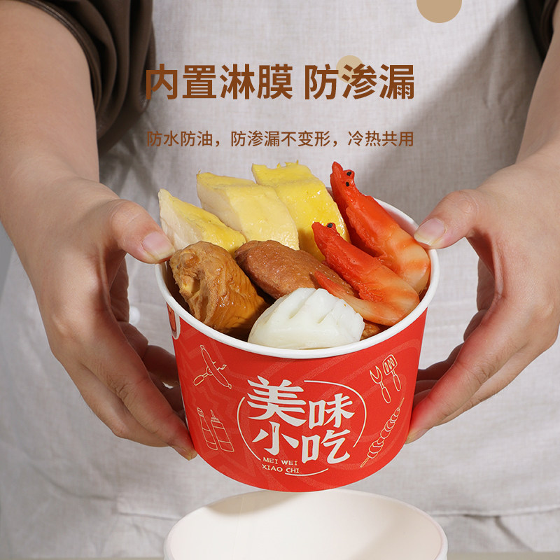 程圆商用一次性纸碗加厚圆形外卖小吃打包餐具饭盒带盖餐盒汤碗