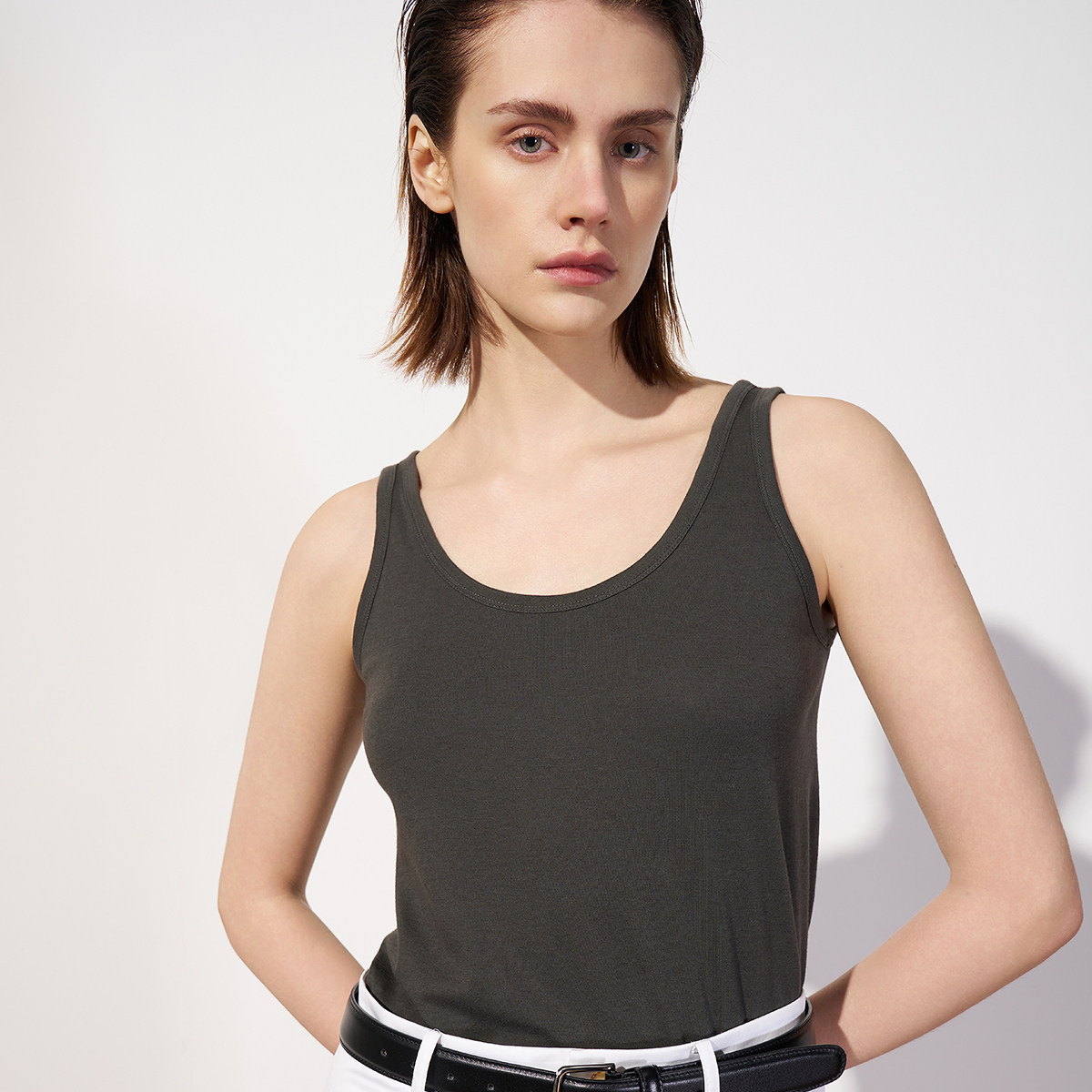 【季末折扣】欧时力 PIMA棉无袖背心上衣内搭圆领休闲2025夏新品
