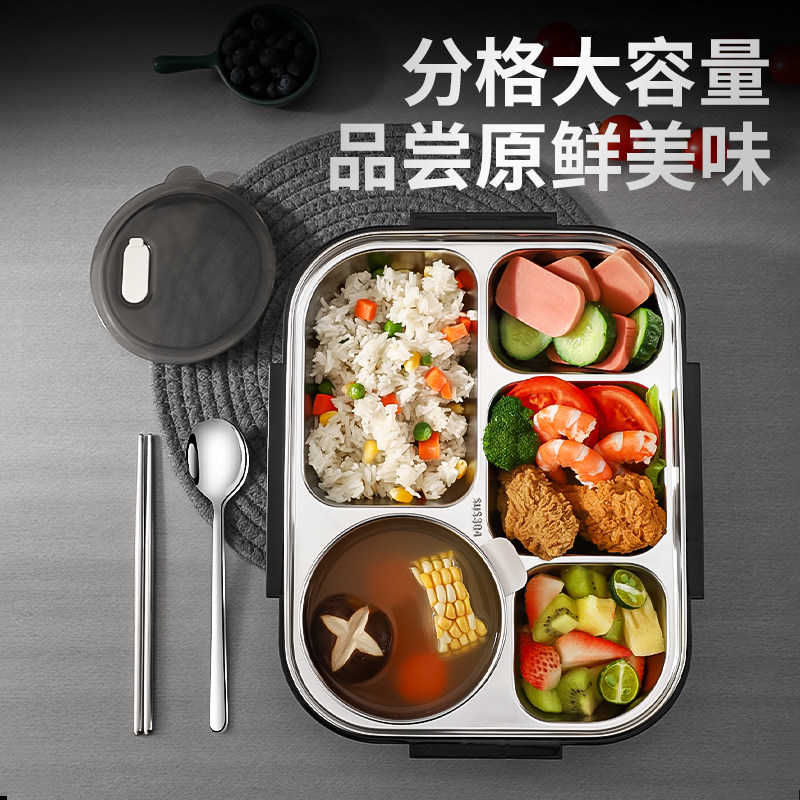 304不锈钢饭盒长方形带盖小学生儿童成人分格食堂蒸饭盒便当餐盒