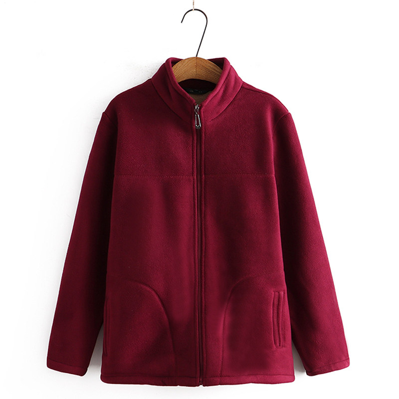 妈妈摇粒绒外套中老年人抓绒衣奶奶上衣服春秋季女装加绒红色开衫
