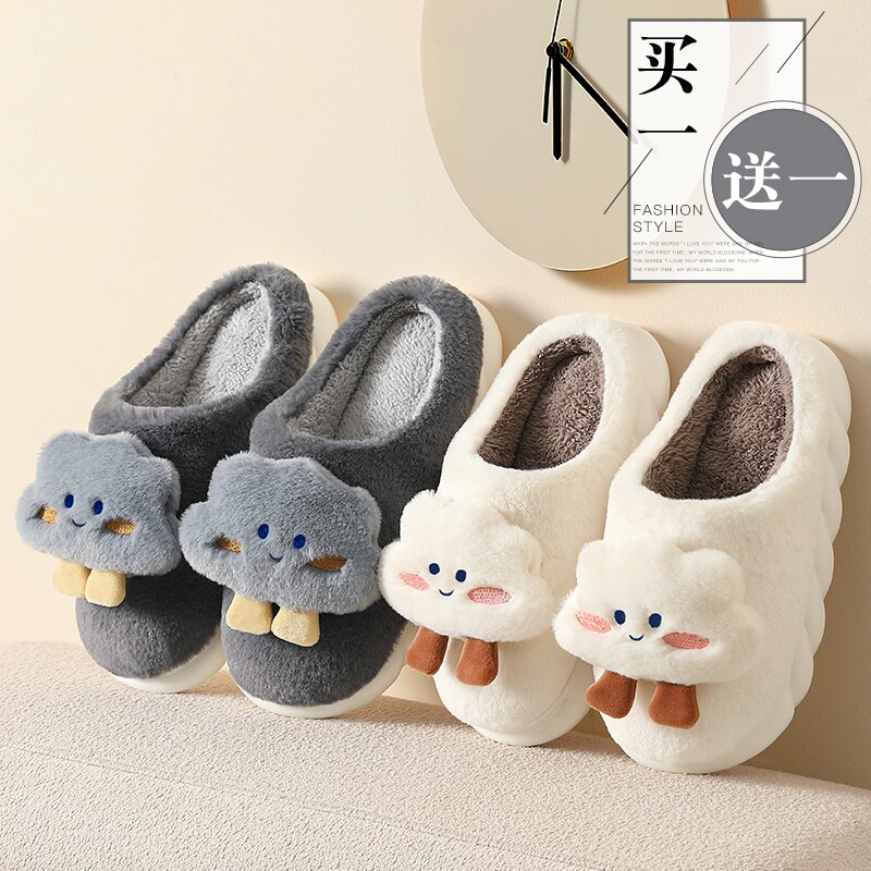 买1送1棉拖鞋情侣家居一对女士冬季可爱室内保暖棉拖男式冬款毛绒