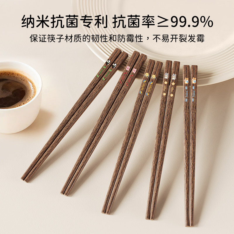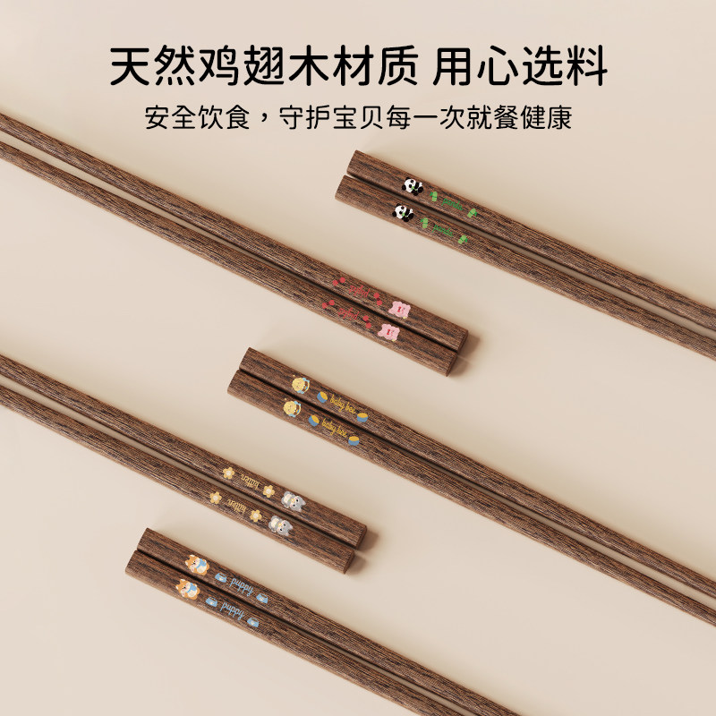 儿童筷子家用高档抗菌鸡翅木实木3岁以上宝宝训练筷子小学生专用