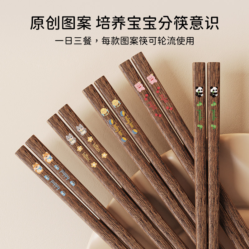 味家儿童鸡翅木筷子小学生专用3岁6岁木质家用宝宝食品级训练筷子