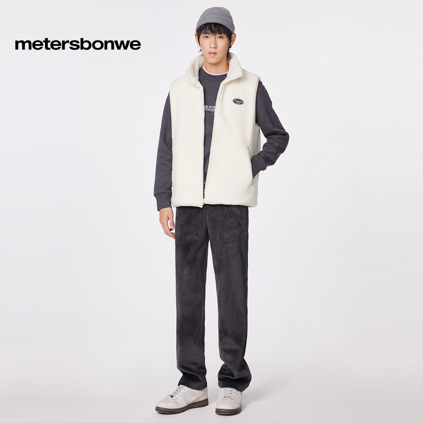 美特斯邦威马甲男士立领仿羊羔绒马甲潮流时尚休闲字母印花上衣