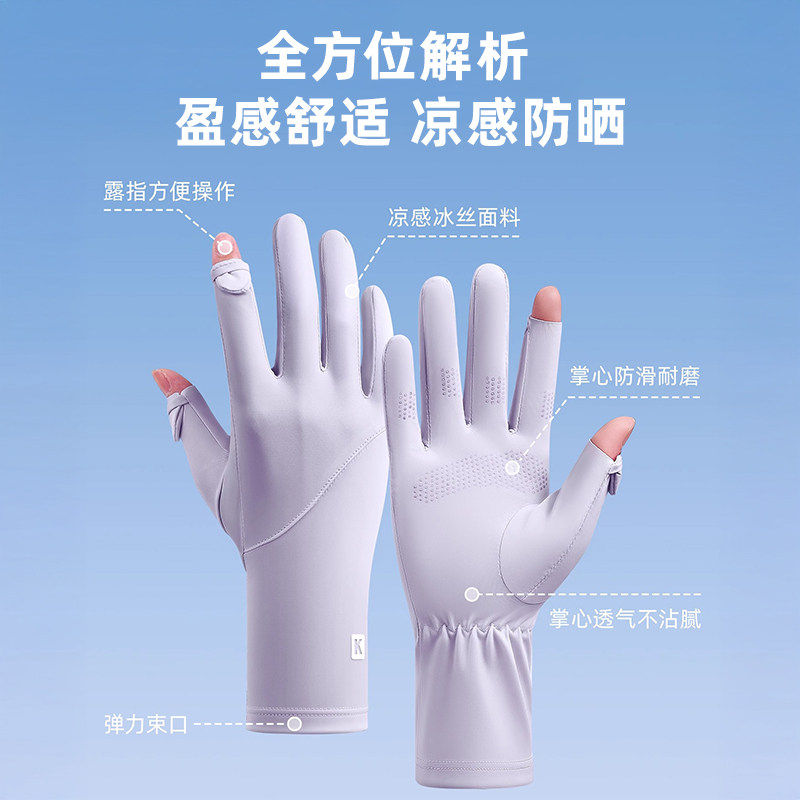 防晒手套女防紫外线2026新款冰丝夏季薄电动开车骑行露指加长手套