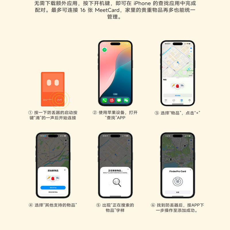 Meetcard数字名片防丢卡片airtag平替定位器NFC碰碰卡追踪神器适用iphoe17/16/15车钥匙行李箱随身物件查找