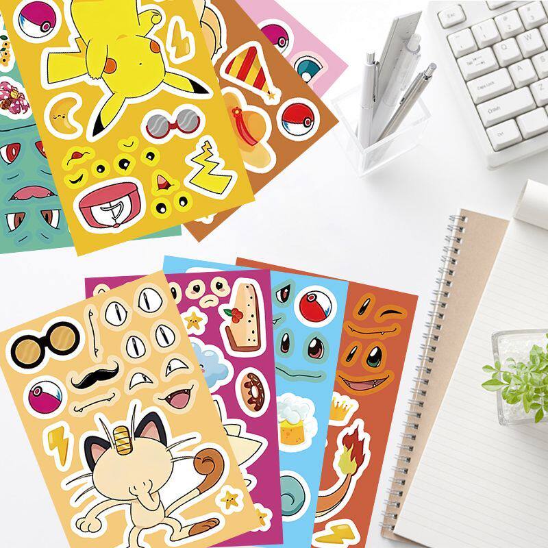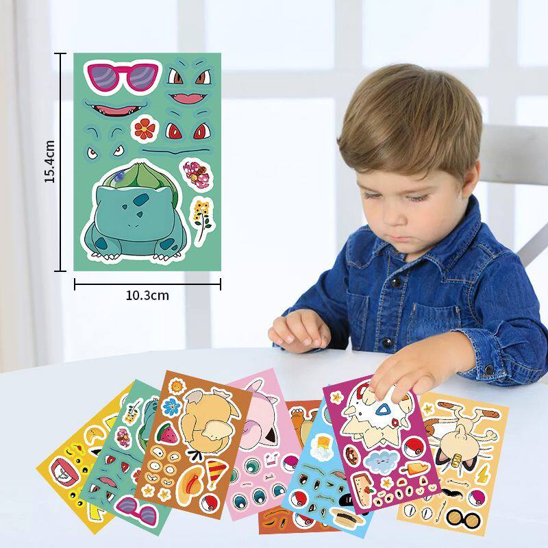 16张宝可梦拼图贴纸神奇宝贝皮卡丘儿童创意卡通装饰手账贴画
