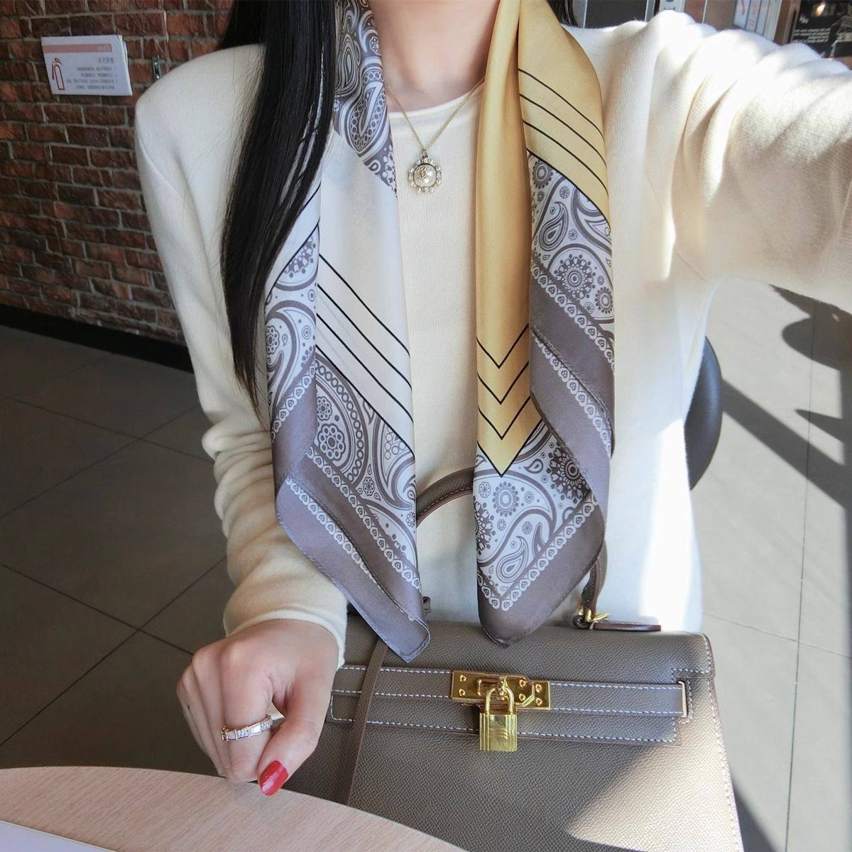 2024新款四季百搭长条小丝巾女薄款洋气高级黑白围脖领巾韩式围巾