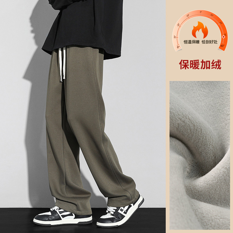 KF真维斯男款宽松保暖休闲裤 2025冬季新品 加绒加厚抽绳长裤男