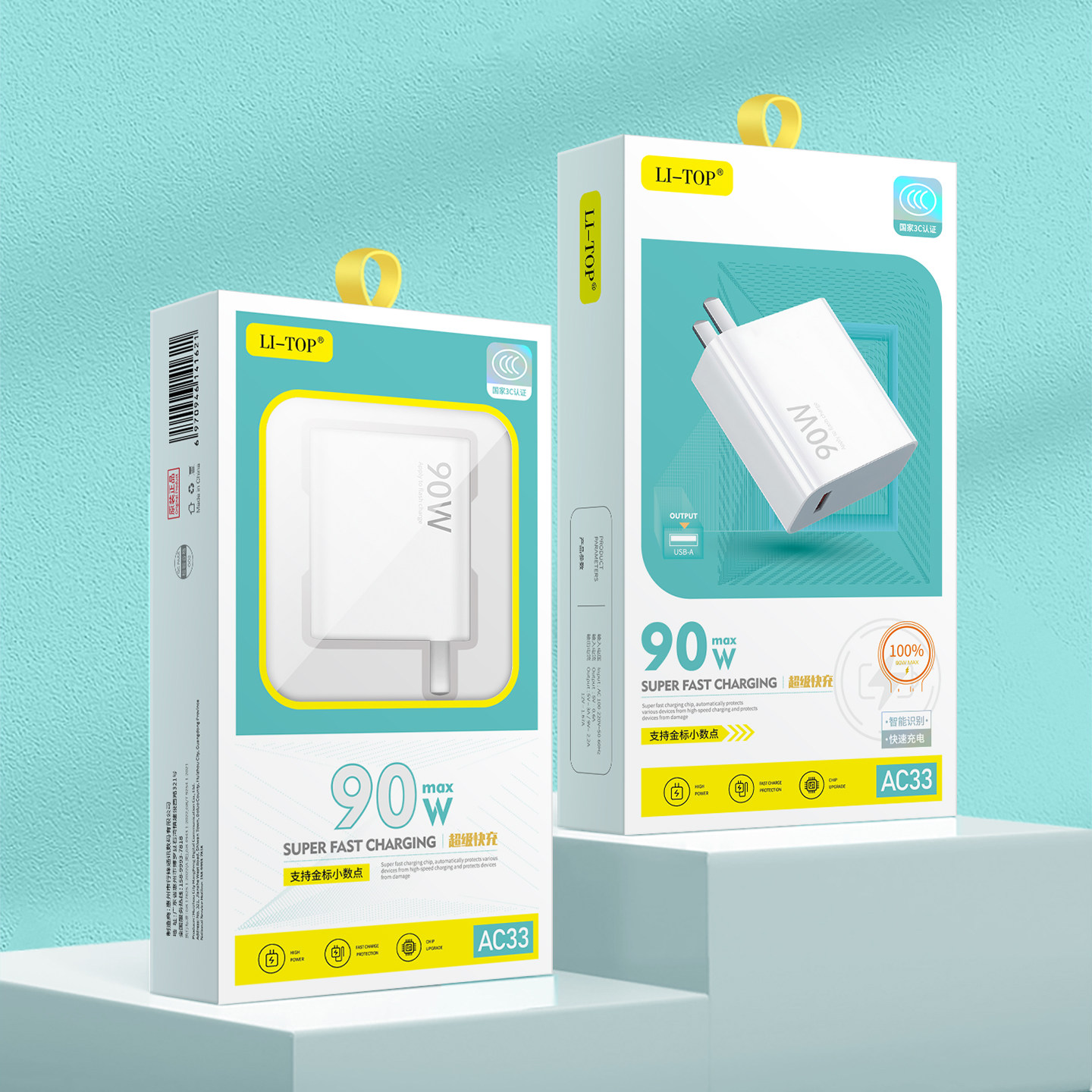 3C认证力拓AC33充电头适用小米红米手机充电器兼容67W/90W/120W超级闪充显示金标蓝标快充充电头充电套装批发