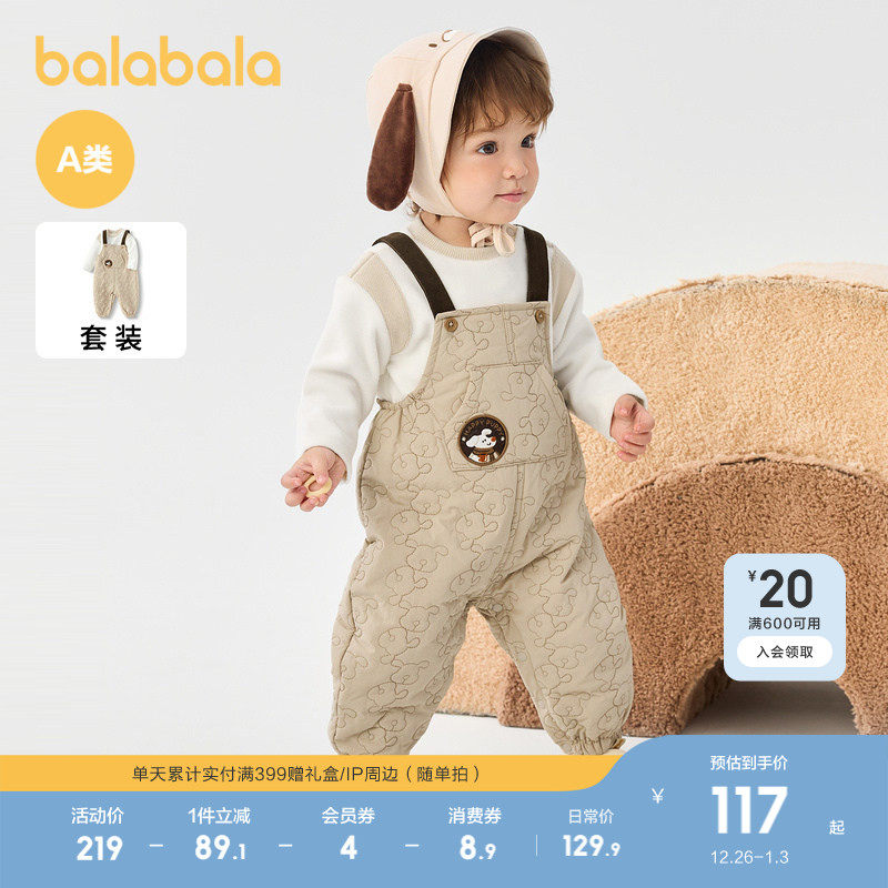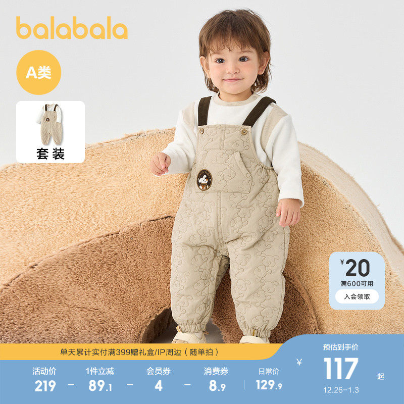 巴拉巴拉宝宝秋冬男童套装背带裤两件套简约休闲洋气时尚可爱萌趣