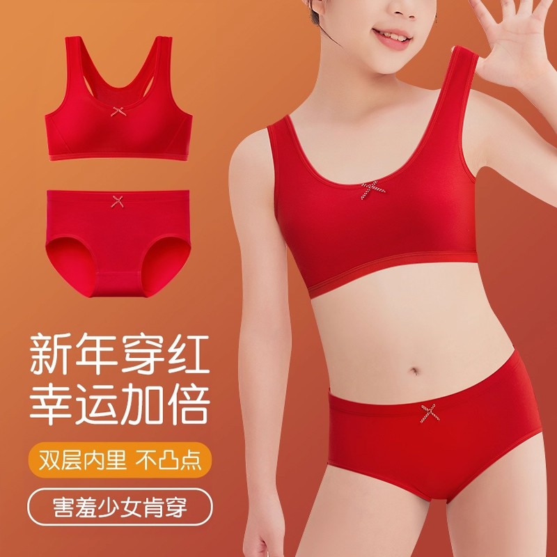 女童本命年红色内衣套装2026马年儿童少女发育期文胸背心12岁女孩