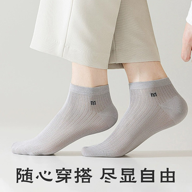 竹纤维袜子男士夏季薄款短袜纯棉抑菌夏天网眼透气男款运动短筒袜