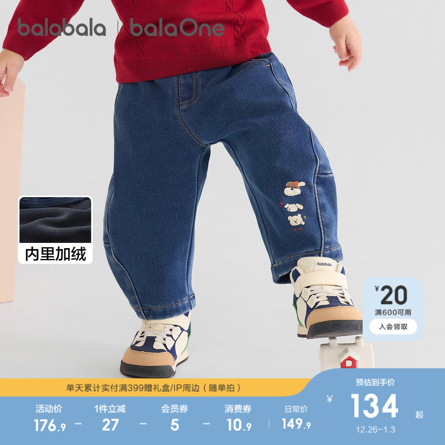 巴拉巴拉童装儿童牛仔裤子加绒女童2025秋冬装新款弯刀裤男童萌趣