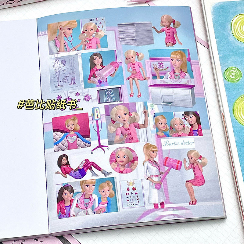 芭比公主贴纸书高颜值延边切膜手账贴纸本diy素材贴纸本可爱卡通