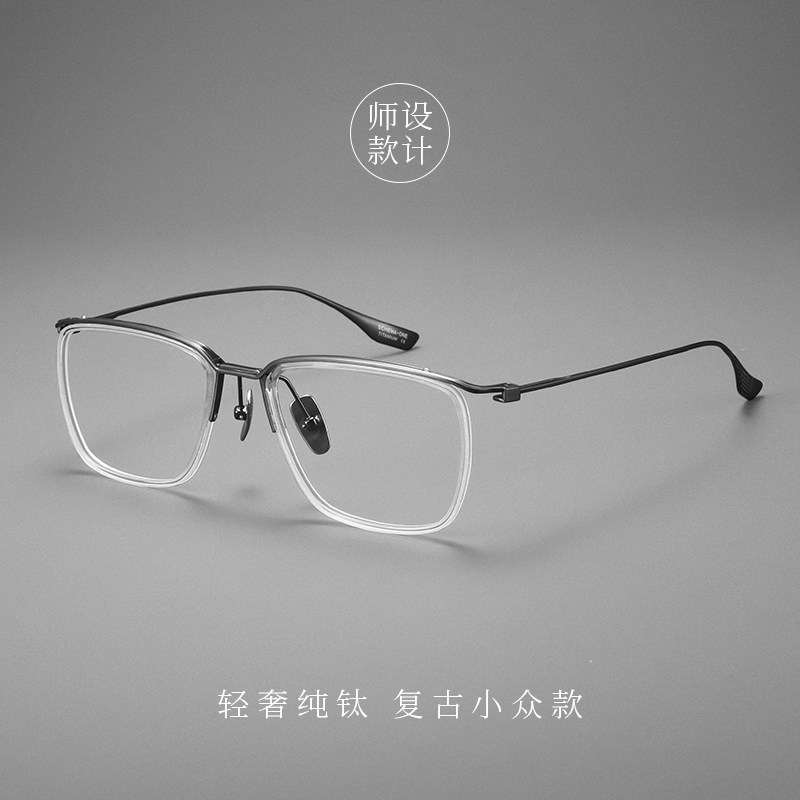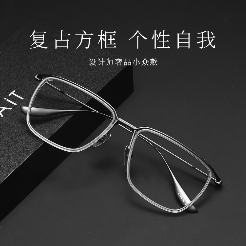 设计师款超轻纯钛方框近视眼镜男防蓝光抗辐射平光护目可配度数女