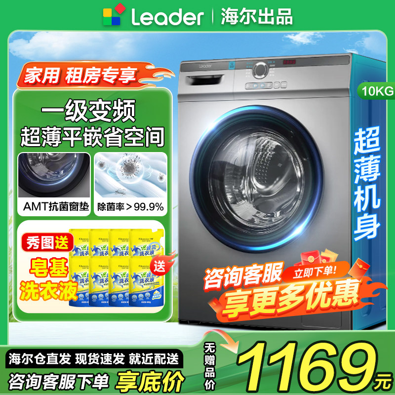 海尔统帅10公斤滚筒洗衣机10kg大容量家用全自动洗衣机B29S上排水