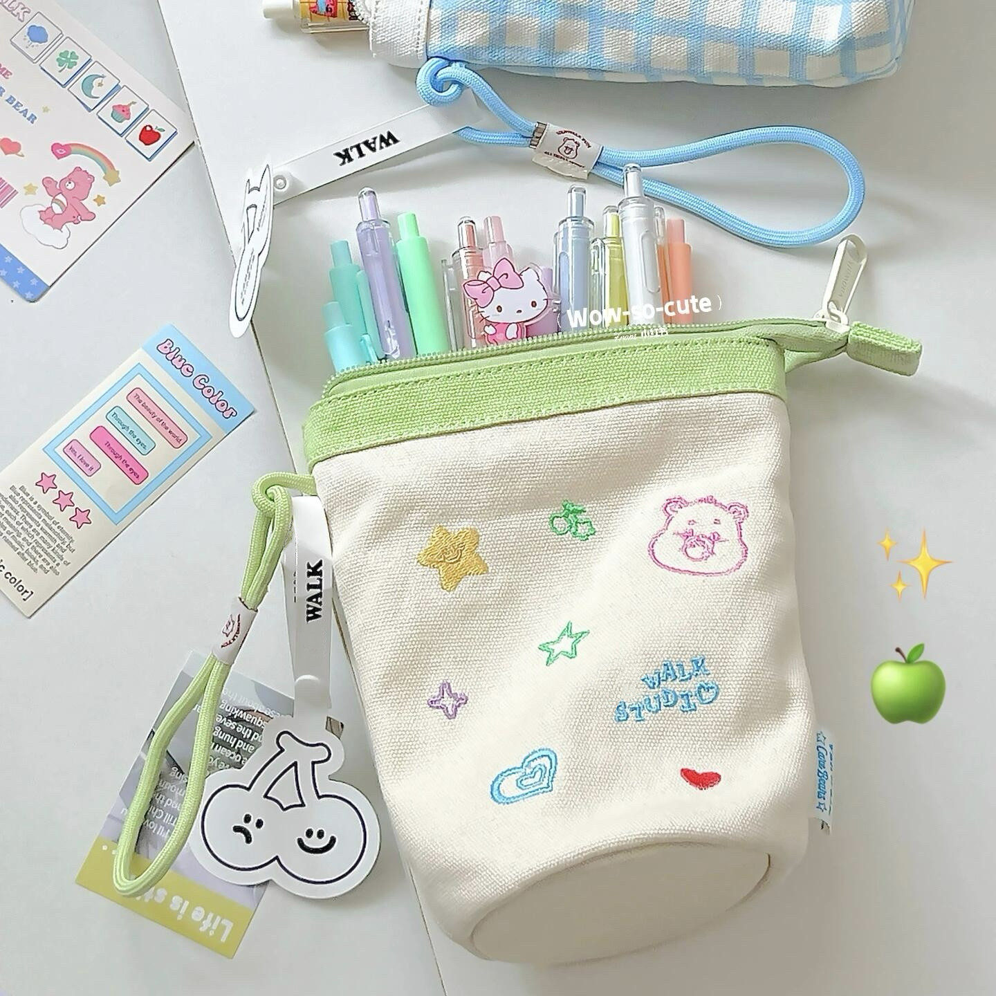 新款2024日系简约竖翻笔袋高颜值女小初中学生大容量铅笔文具收纳