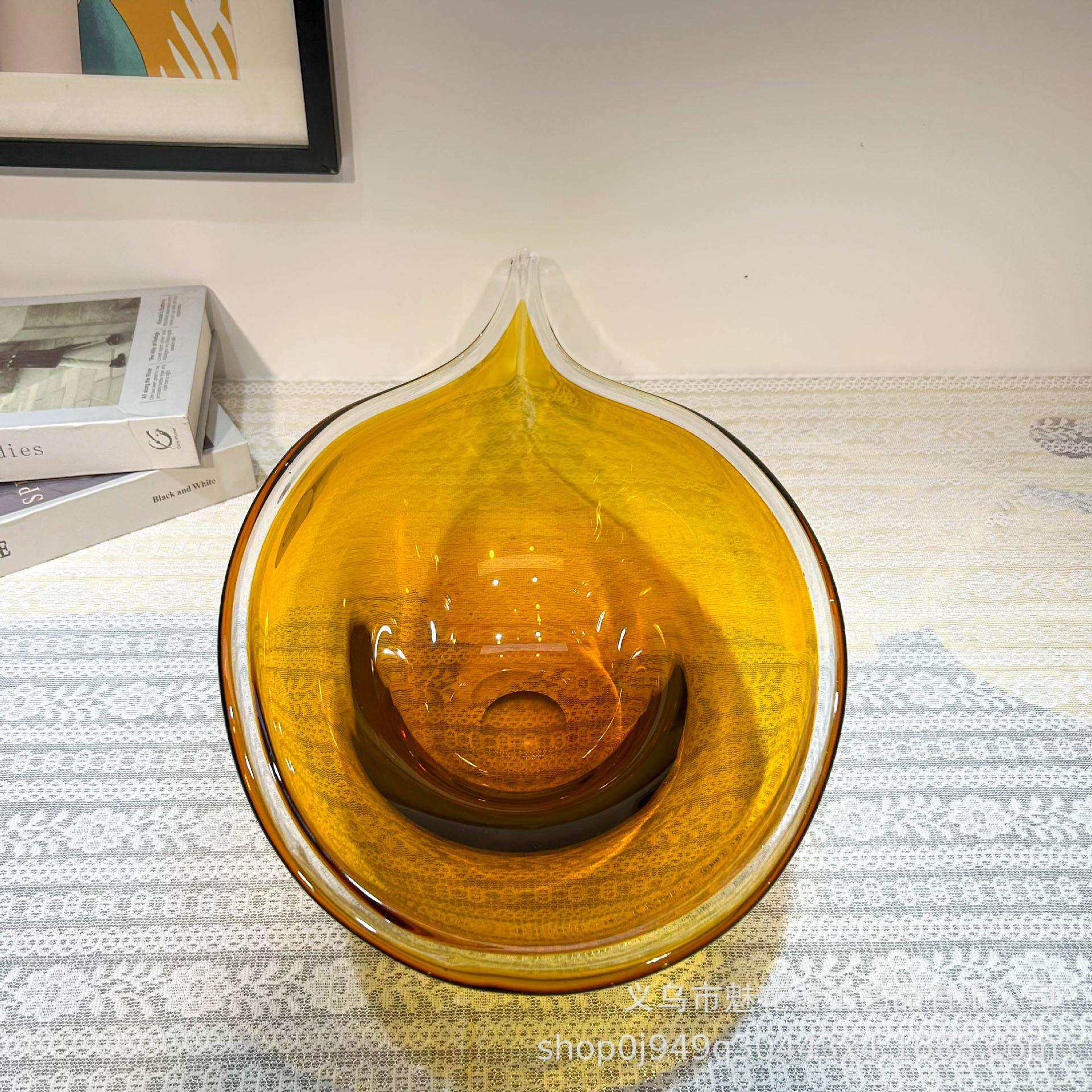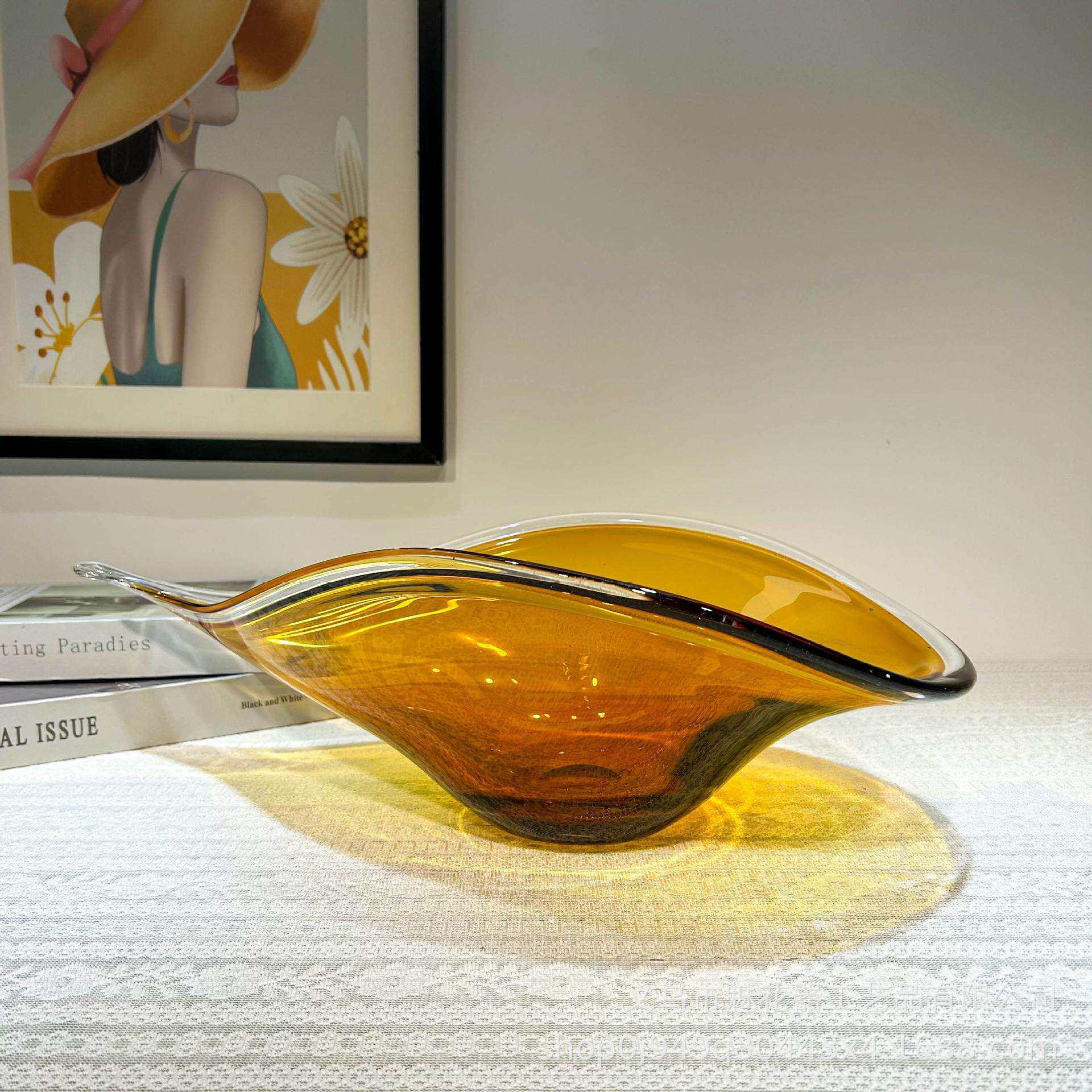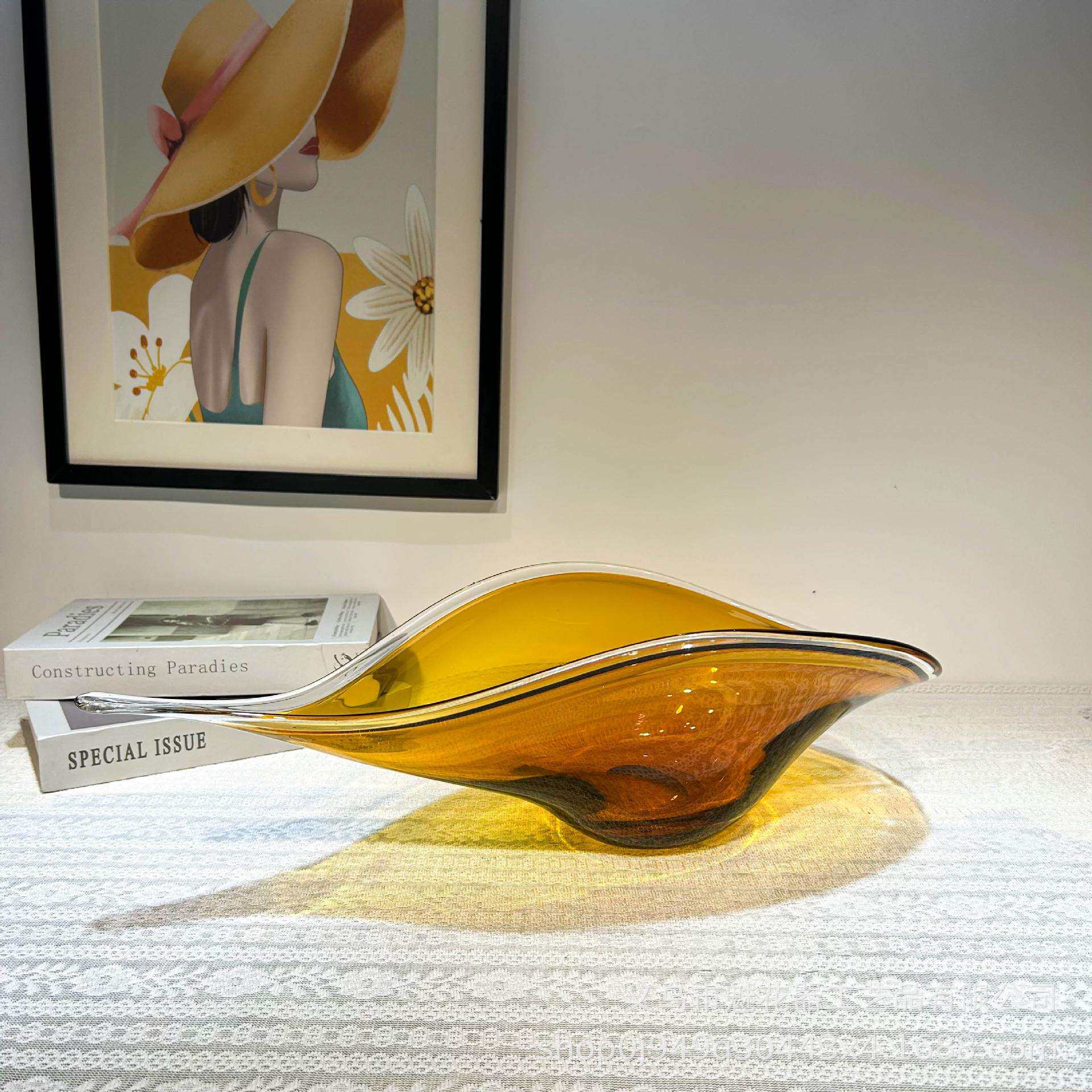 轻奢简约欧式现代琉璃指南勺大果盘样板间软装饰品客厅茶几大摆件