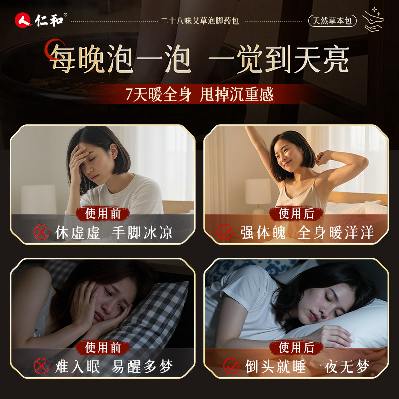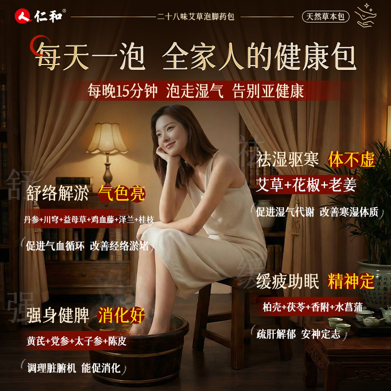 北京同仁堂艾草泡脚的药包去湿气祛排毒驱寒助睡眠足浴生姜花椒叶