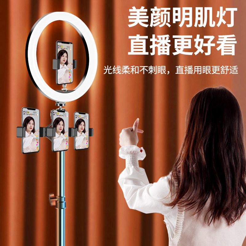 多机位双机位手机直播专用支架补光灯三机位四机位拍摄自拍杆三角架夹落地式多功能三脚架