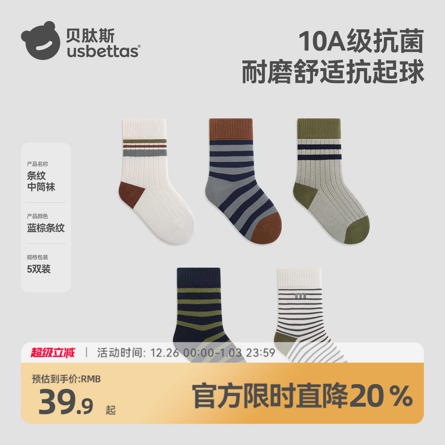 贝肽斯儿童袜子男女童秋冬新款男孩棉袜无骨抗菌防臭中筒袜春A类S